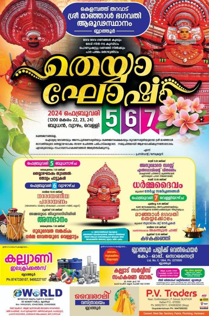 Kannur Blathur Kelambath Tharavadu Sree Manjal Bhagavathi Aaroodasthanam