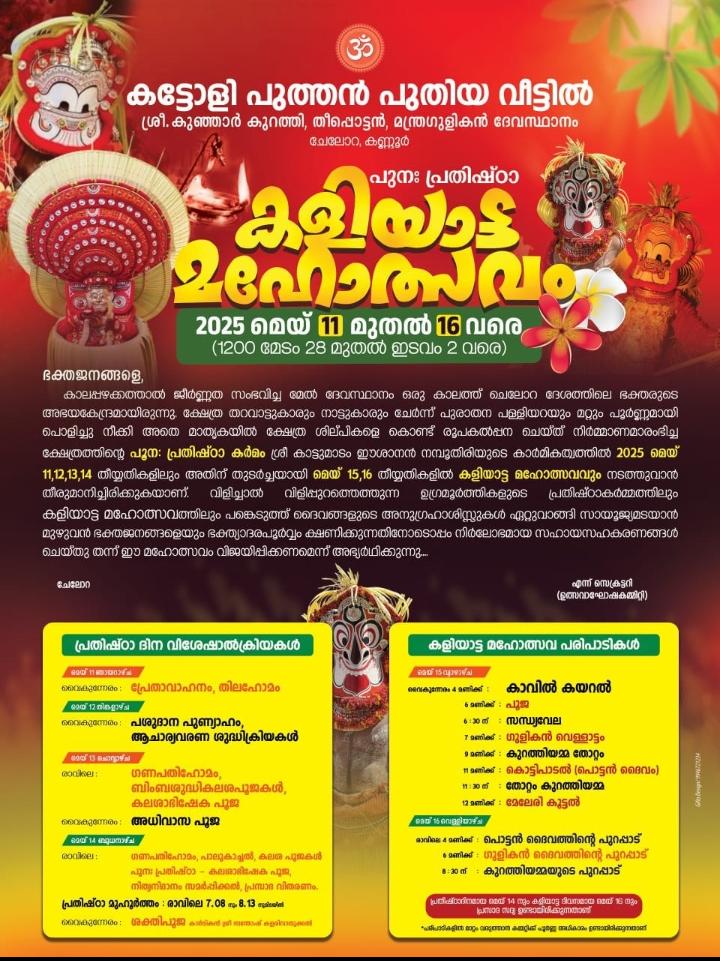 Kannur Chelora Kattoli Puthan Puthiya Veettil Sree Kunjar Kurathi Theeppottan Manthragulikan Devasthanam