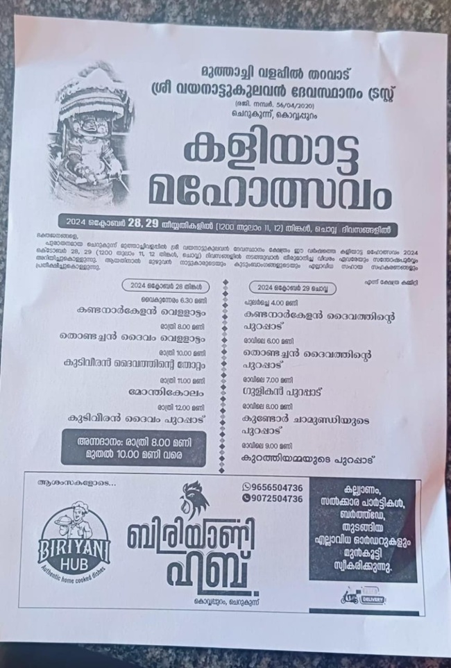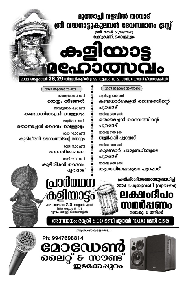 Kannur Cherukunnu Kovvappuram Muthachi Valappil Tharavadu Sree Vayanattu Kulavan Devasthanam Kshetram Trust