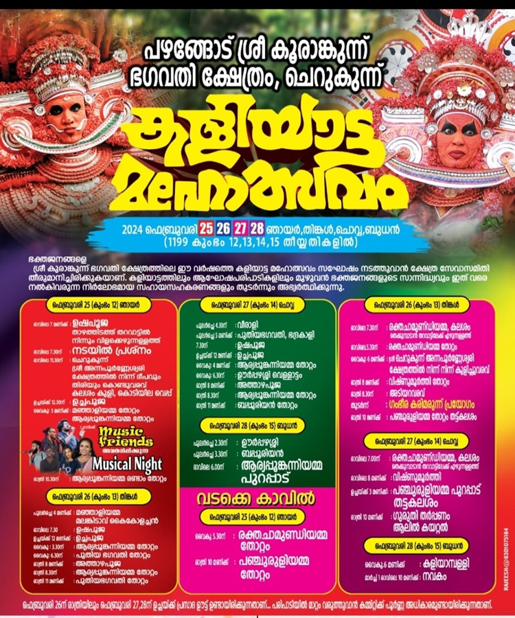 ചെറുകുന്ന് പഴങ്ങോട് ദേശത്ത് സ്ഥിതി ചെയ്യുന്ന ശ്രീ കൂരാങ്കുന്ന് ഭഗവതി ക്ഷേത്രം കോലത്തുനാടിൻ്റെ തനതായ സങ്കര സംസ്കാരത്തിൻ്റെ അതിസമ്പന്നമായ പാരമ്പര്യം വിളിച്ചോതുന്ന ആരാധനാലയമാണ്. ബ്രാഹ്മണ – ബ്രാഹ്മണേതര ആരാധനാ മാതൃകകളുടെ സങ്കലനം , ഹൈന്ദവ – മുസ്ലിം മത സൗഹാർദത്തിൻ്റെ പ്രതിഫലനം, ആര്യ-ദ്രാവിഡ സംസ്കാരങ്ങളുടെ ശേഷിപ്പുകൾ അങ്ങനെ ഒട്ടനവധി അർത്ഥതലങ്ങൾ മനസ്സിൽ വെച്ചുകൊണ്ട് മാത്രമേ ഈ ക്ഷേത്രത്തിൻ്റെ ഐതിഹ്യ-ചരിത്രത്താളുകൾ മറിച്ചുനോക്കാന് സാധിക്കൂ.