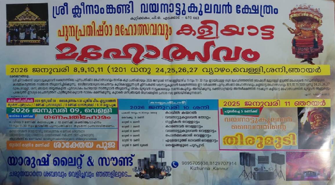 Kannur Edakkad Kuttikkakam Sree Kleenamkandi Vayanattukulavan Kshetram