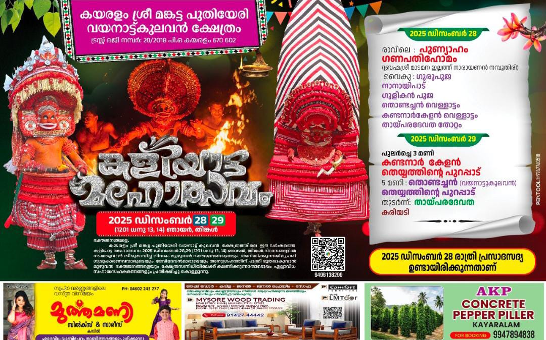 Kannur Kayaralam Sree Mankatta Puthiyeri Vayanattu Kulavan Kshetram