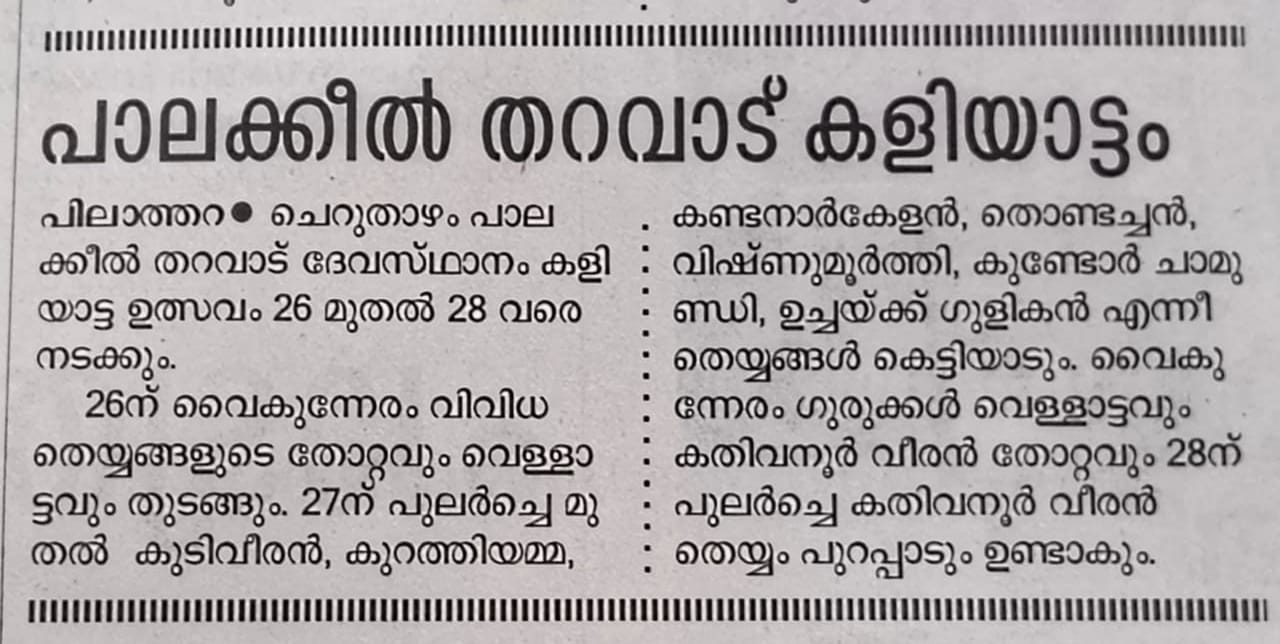 Kannur Mandoor Cheruthazham Center Sree Palakkeel Tharavadu Devasthanam