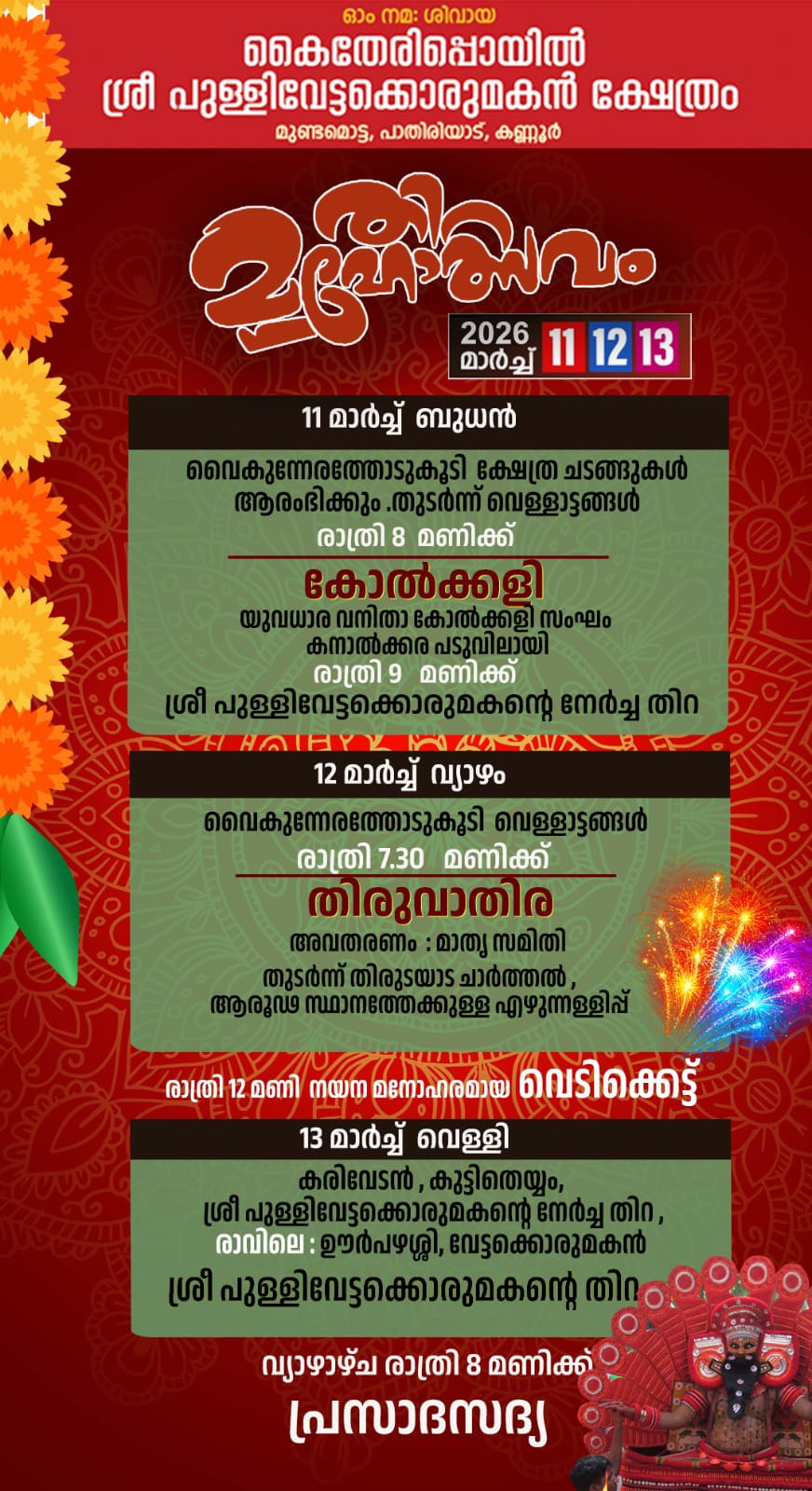 Kannur Pathiriyad Mundamotta Kaitheripoyil Sree Pullivettakkorumakan Kshetram
