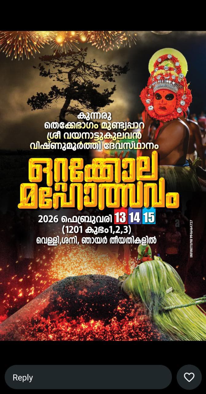 Kannur Ramanthali Kunnaru Thekkebhagam Mundyappara Sree Vayanattukulavan Vishnumurthi Devasthanam