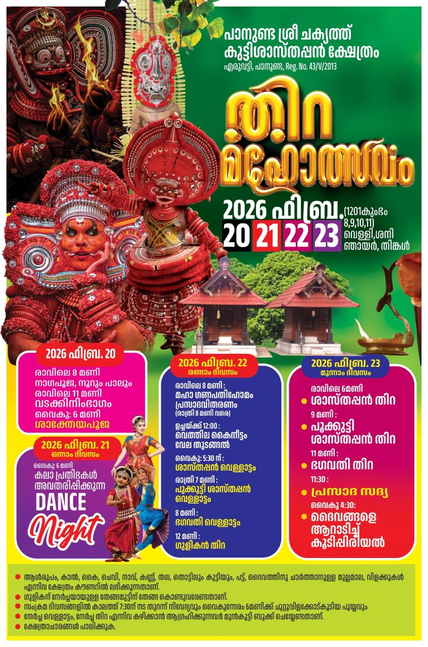 Kannur Thalasseri Panunda Sree Chakyath Kuttisasthappan Kshetram