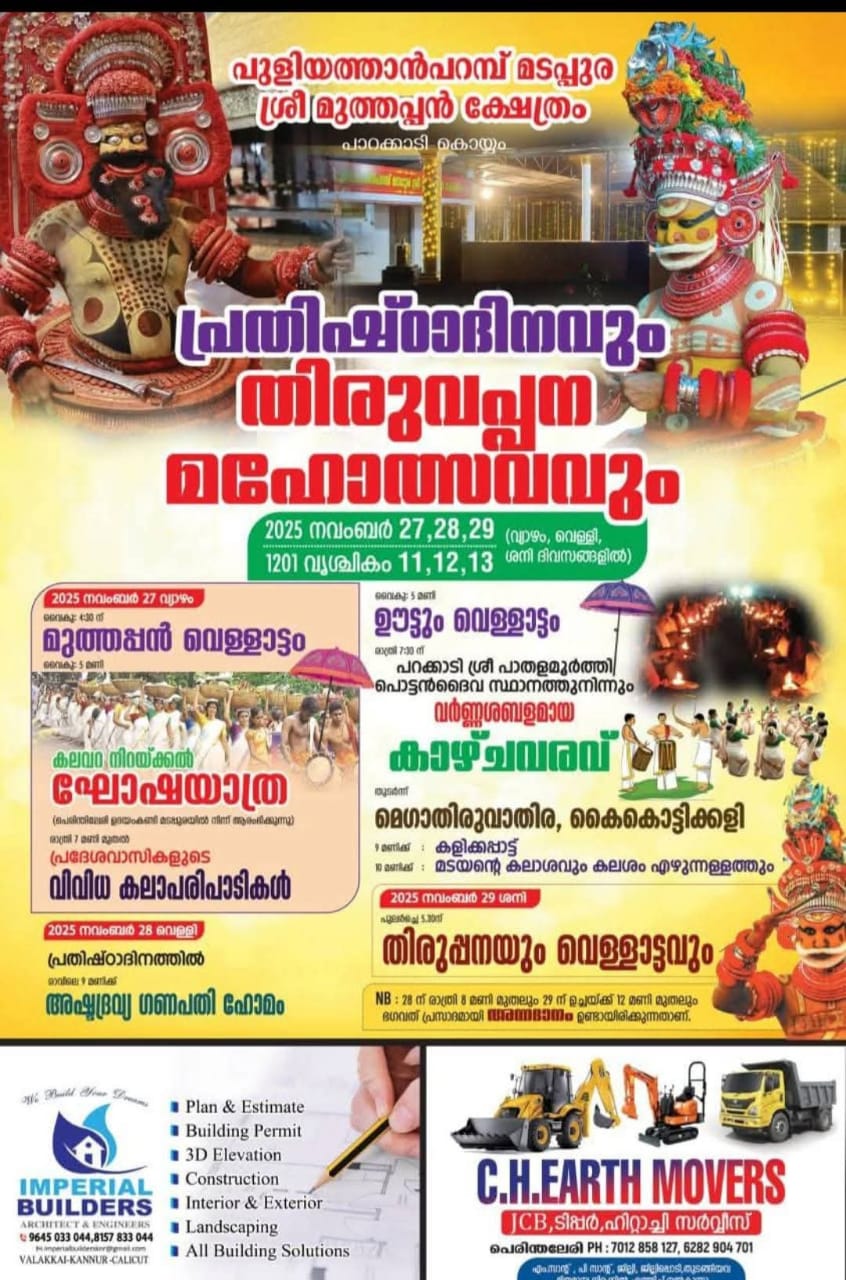 Kannur Thaliparamba Koyyam Parakkadi Puliyathanparamp Madappura Sree Muthappan Kshetram
