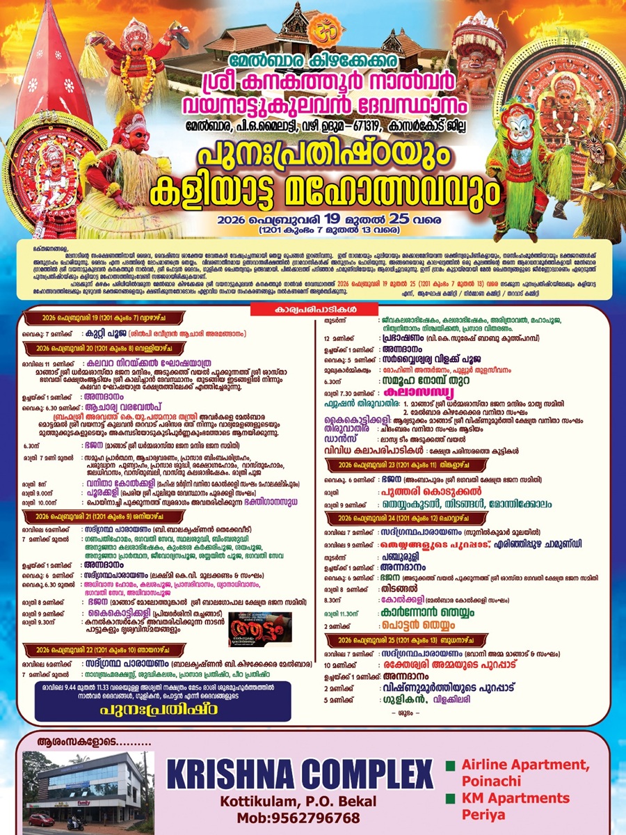 Kasaragod Uduma Melbara Kizhakkekkara Sree Kanakathoor Nalvar Vayanattukulavan Devasthanam