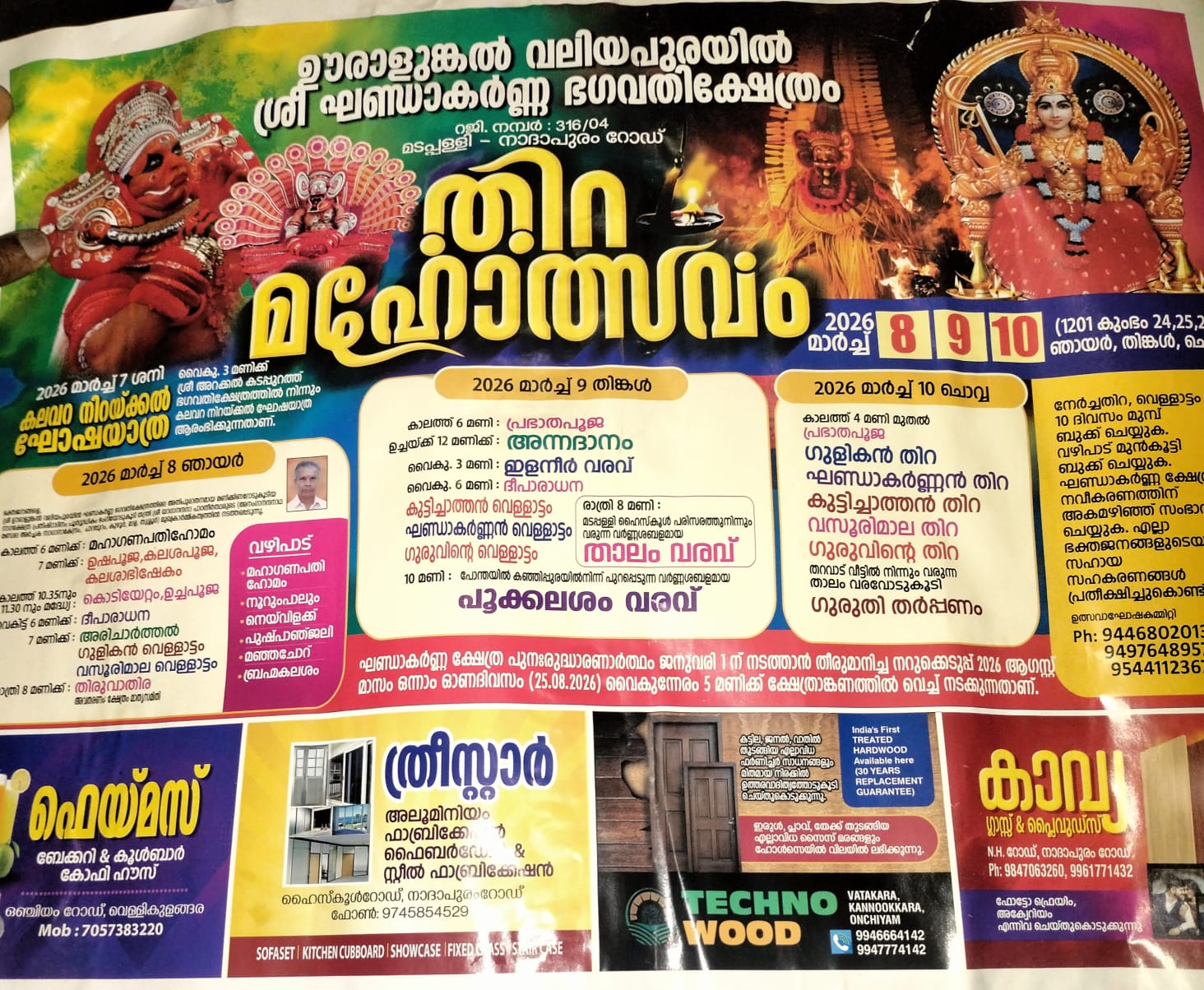 Kozhikode Nadapuram Road Madappalli Ooralunkal Valiyapurayil Sree Khandakarna Bhagavathi Kshetram